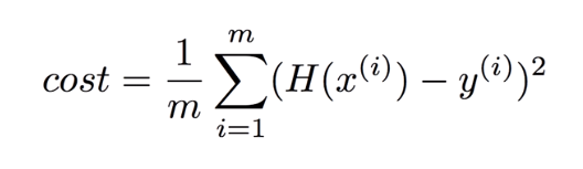 이며, 이 때 cost는 W와 b의 값에 따라 달라지기 때문에 cost(W,b)라고 한다.